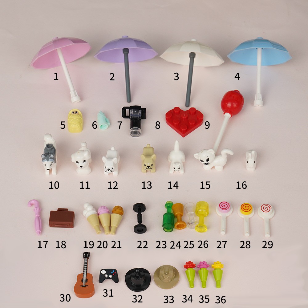 The character blocks can be freely combined to create the style you like. The accessories are available in a variety of colors and styles. It is a unique gift for relatives, lovers, friends, teachers, and children on various festivals.