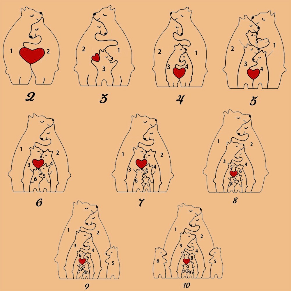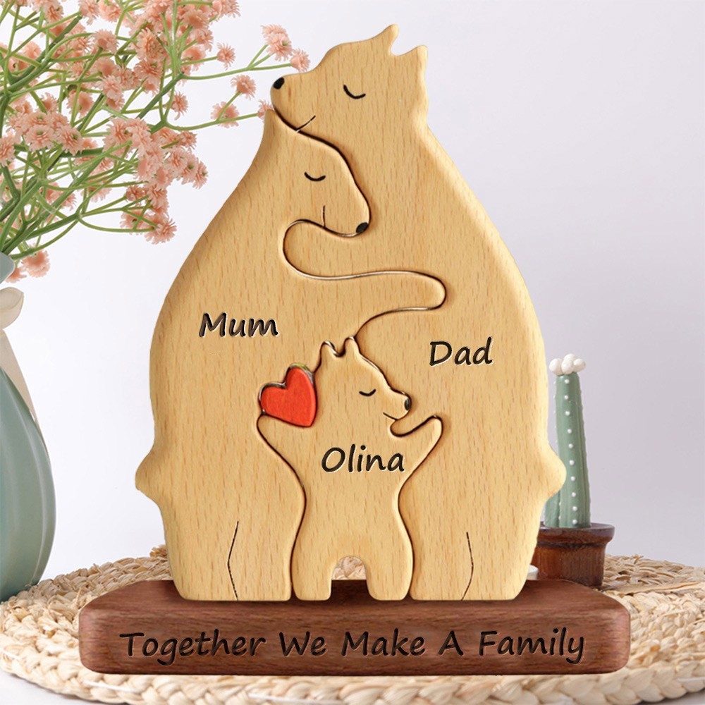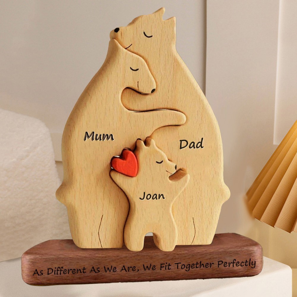 Personalised Puzzle Wooden Bear Family with Stand Family Keepsake Gifts For Her