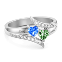 S925 Sterling Silver Personalised Double Heart Birthstone Promise Ring For Her