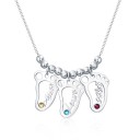 Silver Personalised 1-10 Baby Feet Shape Pendants Name Necklace with Birthstones Mother's Necklace