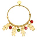 18K Gold Plating Personalised Bangle Bracelet With 1-10 Birthstones Kids Charms
