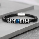 Custom Bead Braid Black Leather Bracelet With 1-10 Beads