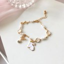 White Daisy Flower and Cute Bunny Adjustable Bracelet